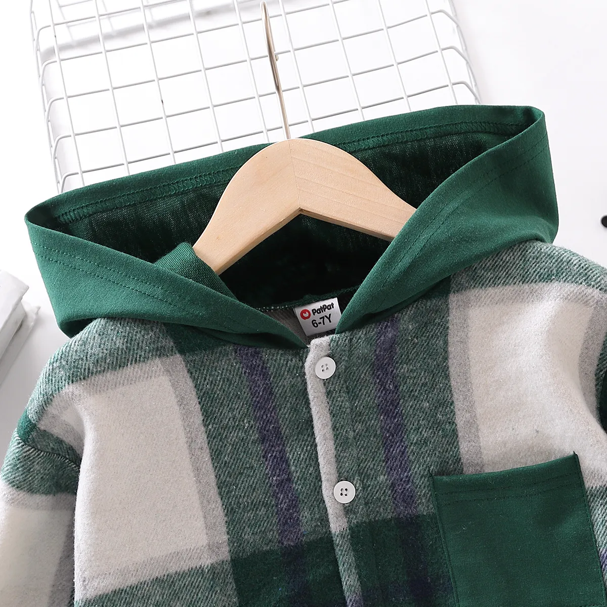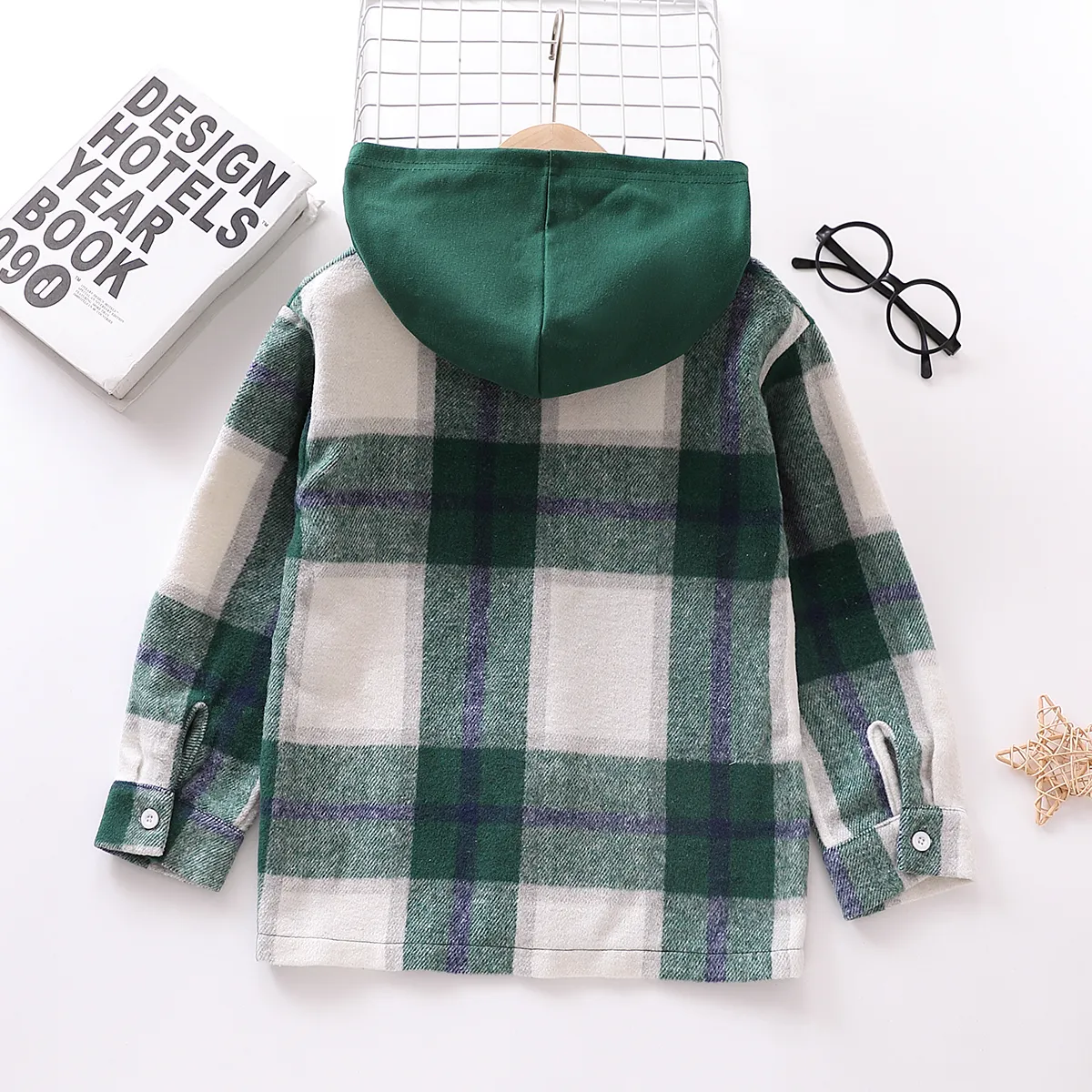 Kid Boy Plaid Button Up Hoodie